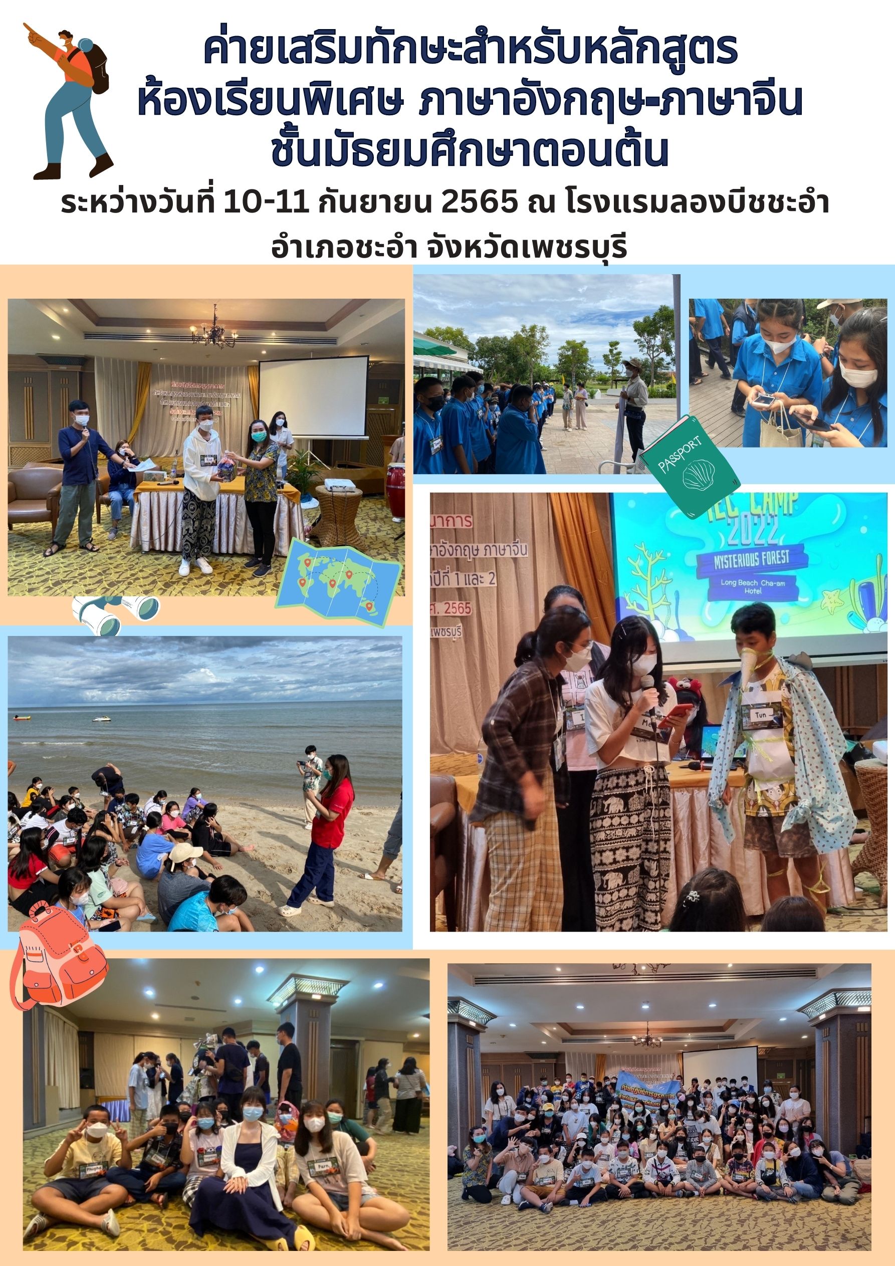 ประมวลภาพกิจกรรมโครงการพิเศษฯ ค่ายปฏิบัติการบูรณาการสำหรับหลักสูตรวิทยาศาสตร์ คณิตศาสตร์ ระดับชั้นมัธยมศึกษาปีที่ 4-6 (ค่ายธรณีวิทยา) ระหว่างวันที่ 14-15 มกราคม 2566 ณ มหาวิทยาลัยมหิดล วิทยาเขตกาญจนบุรี อำเภอไทรโยค จังหวัดกาญจนบุรี ค่ายปฏิบัติการบูรณาการสำหรับหลักสูตรวิทยาศาสตร์ คณิตศาสตร์ ระดับชั้นมัธยมศึกษาปีที่ 1-3 (ค่ายธรณีวิทยา) ระหว่างวันที่ 21-22 มกราคม 2566 ณ มหาวิทยาลัยมหิดล วิทยาเขตกาญจนบุรี อำเภอไทรโยค จังหวัดกาญจนบุรี ค่ายปฏิบัติการบูรณาการสำหรับหลักสูตรวิทยาศาสตร์ คณิตศาสตร์ ระดับชั้นมัธยมศึกษาปีที่ 4-6 (ค่ายหุ่นยนต์) ระหว่างวันที่ 22-23 กรกฎาคม 2566 ณ เรือนสำราญรีสอร์ท ตำบลท่าเคย อำเภอสวนผึ้งจังหวัดราชบุรี ค่ายปฏิบัติการบูรณาการสำหรับหลักสูตรวิทยาศาสตร์ คณิตศาสตร์ ระดับชั้นมัธยมศึกษาปีที่ 1-3 (ค่ายหุ่นยนต์) ระหว่างวันที่ 29-30 กรกฎาคม 2566 ณ เรือนสำราญรีสอร์ท ตำบลท่าเคย อำเภอสวนผึ้งจังหวัดราชบุรี ค่ายปฏิบัติการบูรณาการ สำหรับหลักสูตรห้องเรียนพิเศษ คณิตศาสตร์ วิทยาศาสตร์และเทคโนโลยี ระดับชั้นมัธยมศึกษาปีที่ 1 และ 4 ระหว่างวันที่ 6 – 7 สิงหาคม พ.ศ. 2565 ณ อุทยานแห่งชาติเขาสามร้อยยอด อำเภอสามร้อยยอด จังหวัดประจวบคีรีขันธ์ ค่ายปฏิบัติการบูรณาการ สำหรับหลักสูตรห้องเรียนพิเศษ คณิตศาสตร์ วิทยาศาสตร์และเทคโนโลยี ระดับชั้นมัธยมศึกษาปีที่ 2 5 และ 6 ระหว่างวันที่ 16 – 18 กันยายน พ.ศ. 2565 ณ คณะสัตว์ศาสตร์และเทคโนโลยีการเกษตร มหาวิทยาลัยศิลปากร วิทยาเขตสารสนเทศเพชรบุรี ค่ายปฏิบัติการบูรณาการ สำหรับหลักสูตรห้องเรียนพิเศษ คณิตศาสตร์ วิทยาศาสตร์และเทคโนโลยี ระดับชั้นมัธยมศึกษาปีที่ 3 ระหว่างวันที่ 16 – 18 กันยายน พ.ศ. 2565 ณ อุทยานแห่งชาติเขาสามร้อยยอด อำเภอสามร้อยยอด จังหวัดประจวบคีรีขันธ์ ค่ายเสริมทักษะ สำหรับหลักสูตรห้องเรียนพิเศษ ภาษาอังกฤษ ภาษาจีน สำหรับนักเรียนชั้นมัธยมศึกษาตอนต้น ระหว่างวันที่ 10 - 11 กันยายน พ.ศ. 2565 ณ โรงแรมลองบีชชะอำ อำเภอชะอำ จังหวัดเพชรบุรี ค่ายปฏิบัติการบูรณาการ สำหรับหลักสูตรคณิตศาสตร์ วิทยาศาสตร์และเทคโนโลยี ระดับชั้นมัธยมศึกษาปีที่ 3 ระหว่างวันที่ 24 - 25 ธันวาคม 2565 ณ ค่ายวิทยาศาสตร์ทางทะเลและการอนุรักษ์ ตำบลแสมสาร อำเภอสัตหีบ จังหวัดชลบุรี